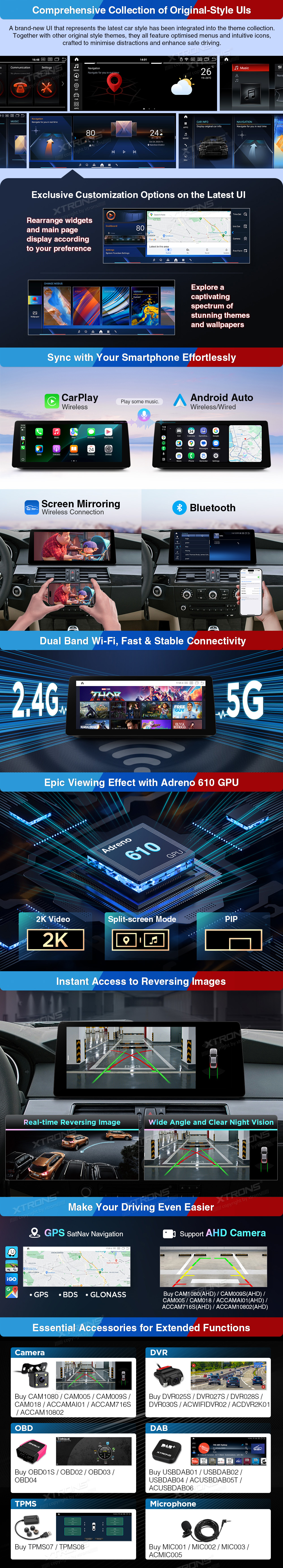 - Obsługa Car auto Play i Android Auto bezprzewodowy