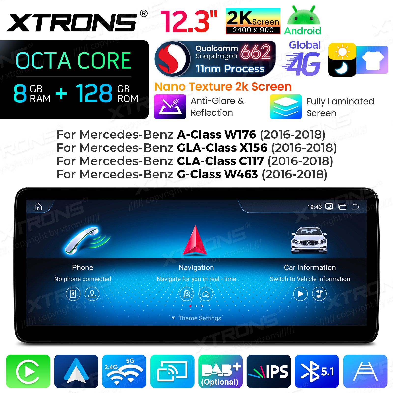 Mercedes C-Class W205 (2015-2018r) NTG 5.1-5.2 12.3 cala 8GB/128GB Android 14