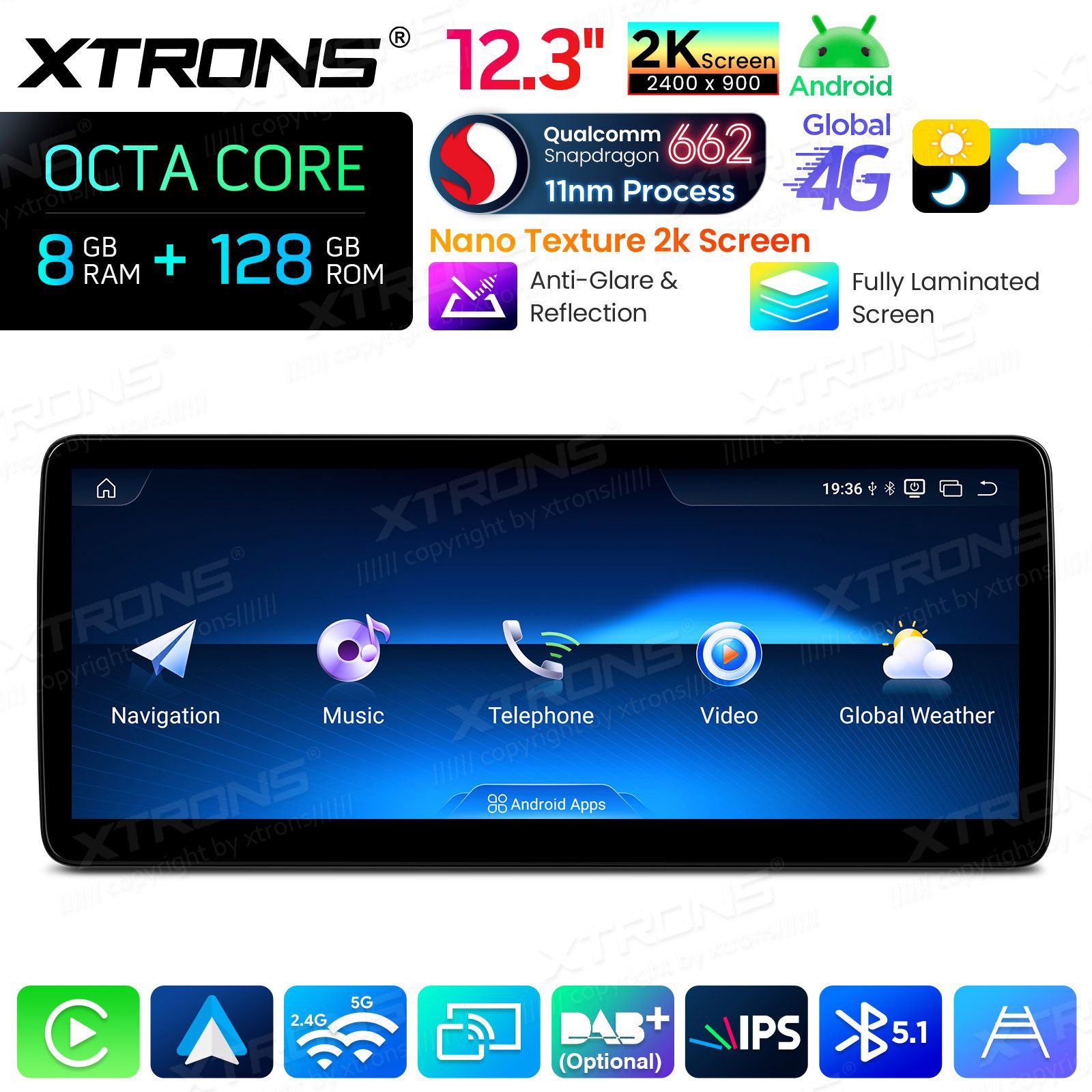 12.3 cala 2400*900 IPS G+G Nano