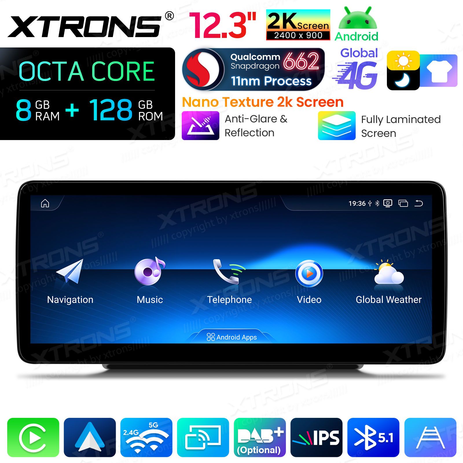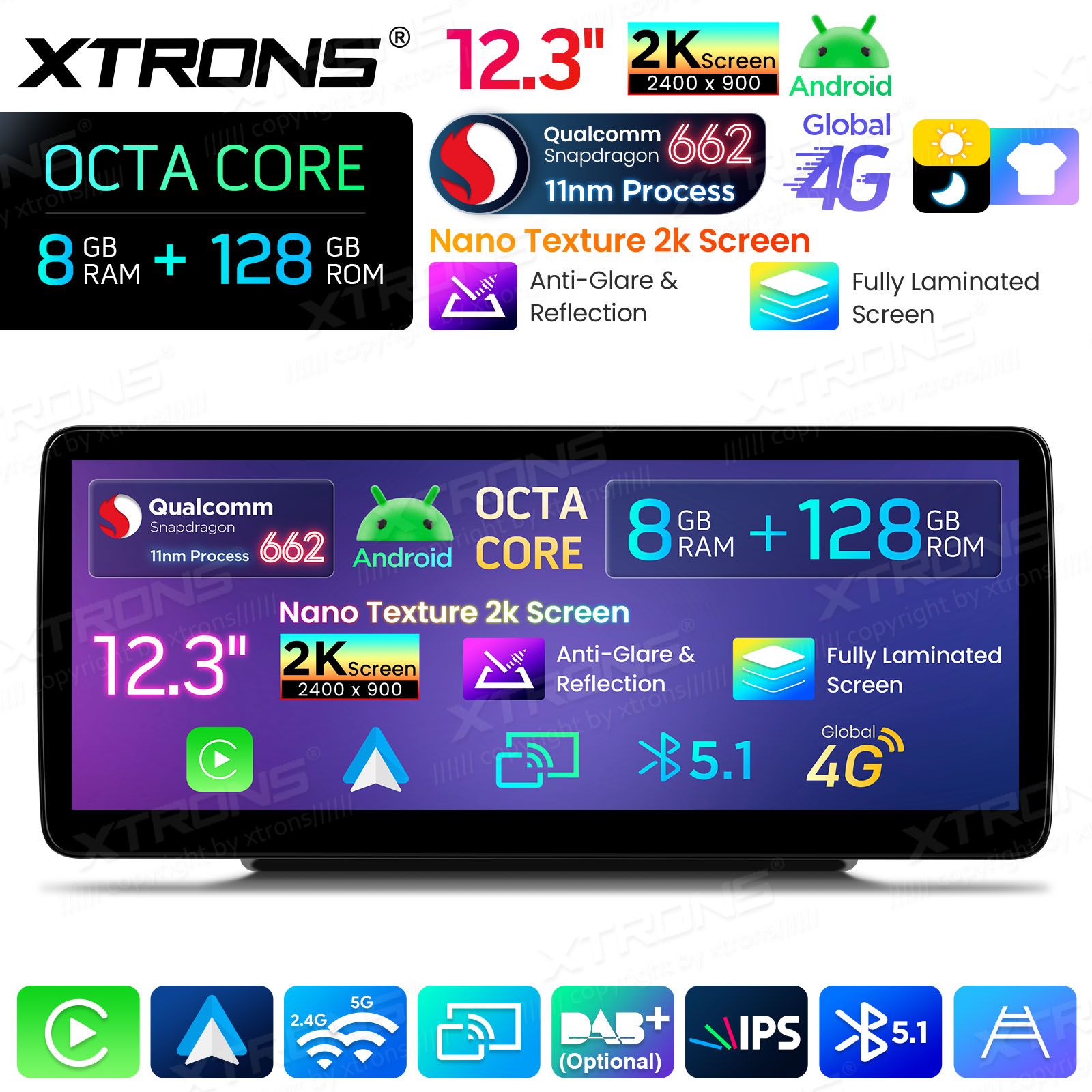 12.3 cala 2400*900 IPS G+G Nano