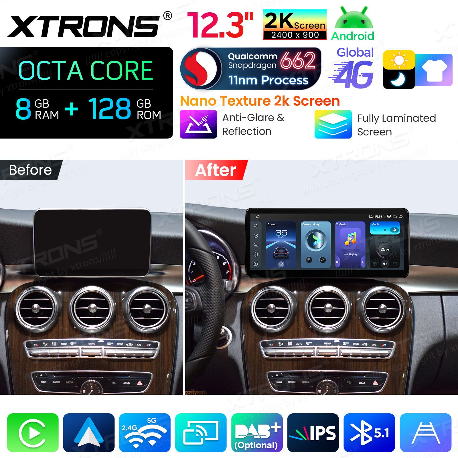 Mercedes -C-klasa W205 (2016-2019r)NTG 5.1-5.2 12.3 cala 8GB/128GB Android 14