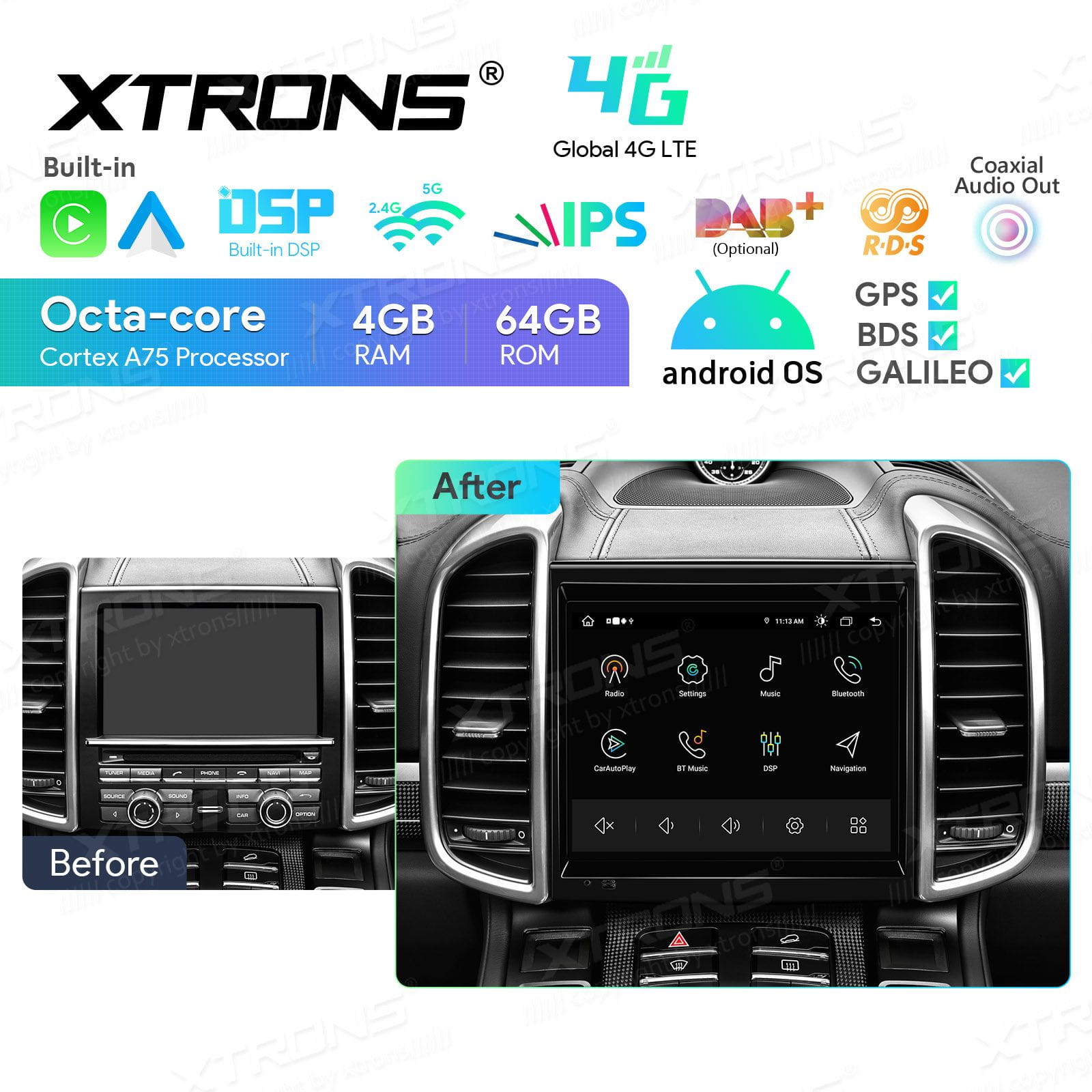 - Specjalnie zaprojektowany przez firmę Xtrons aluminiowa tylna ściana radia znacznie lepiej odprowadzająca ciepło .