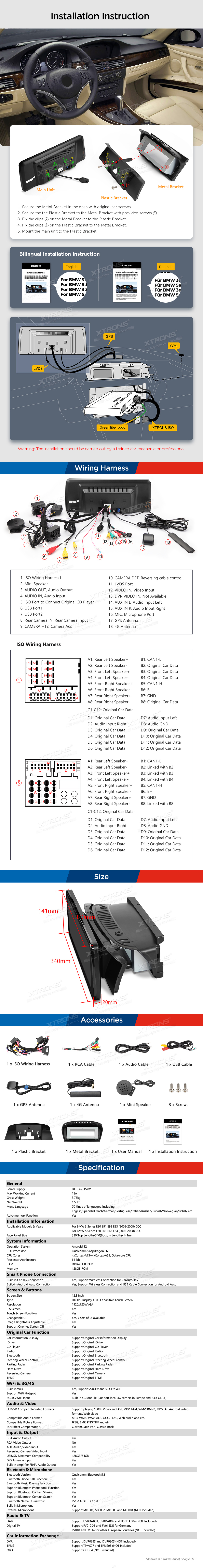 Radio Nawigacja 12.3 cala BMW 3 -E90-93 6GB/128GB CCC-10 pin LVDS