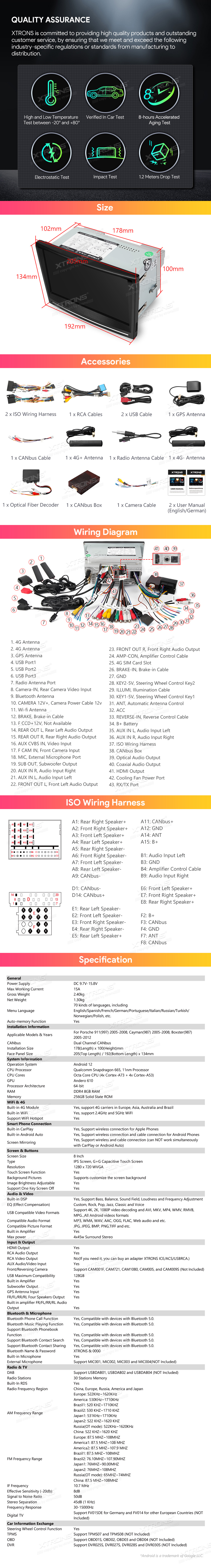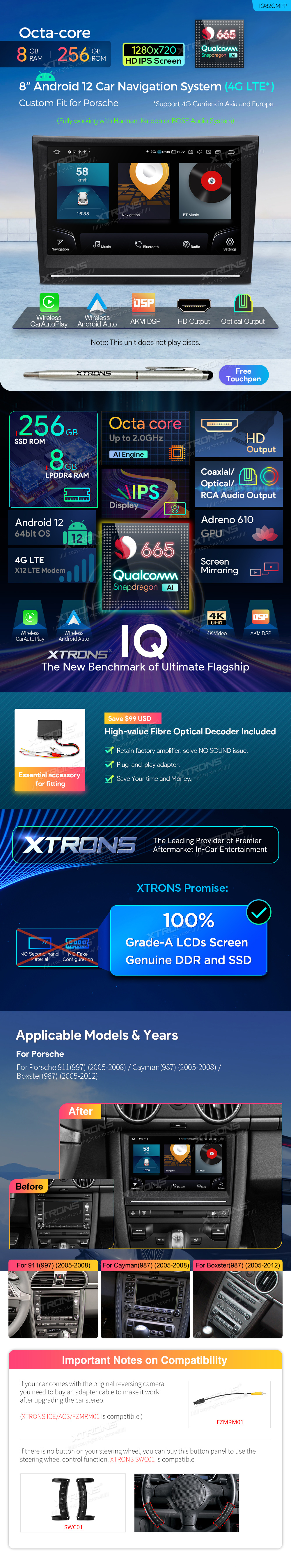 Radio nawigacja Xtrons dedykowana PORSCHE 8 cali