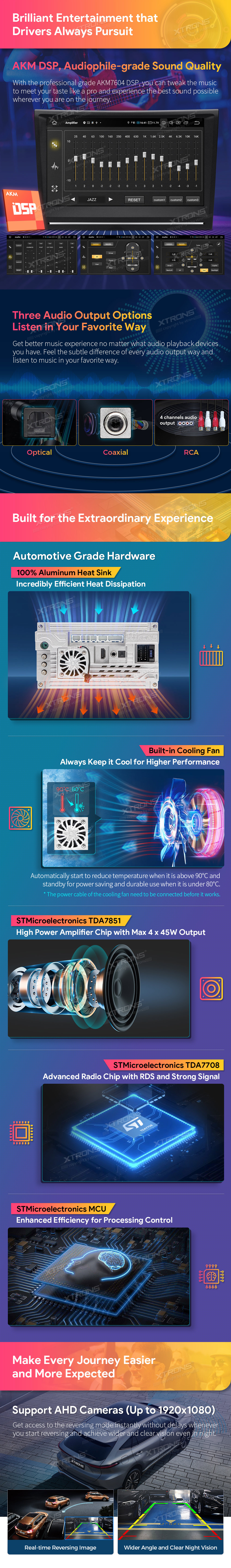 - Specjalnie zaprojektowany przez firmę Xtrons aluminiowa tylna ściana radia znacznie lepiej odprowadzająca ciepło wraz z wiatrakiem .