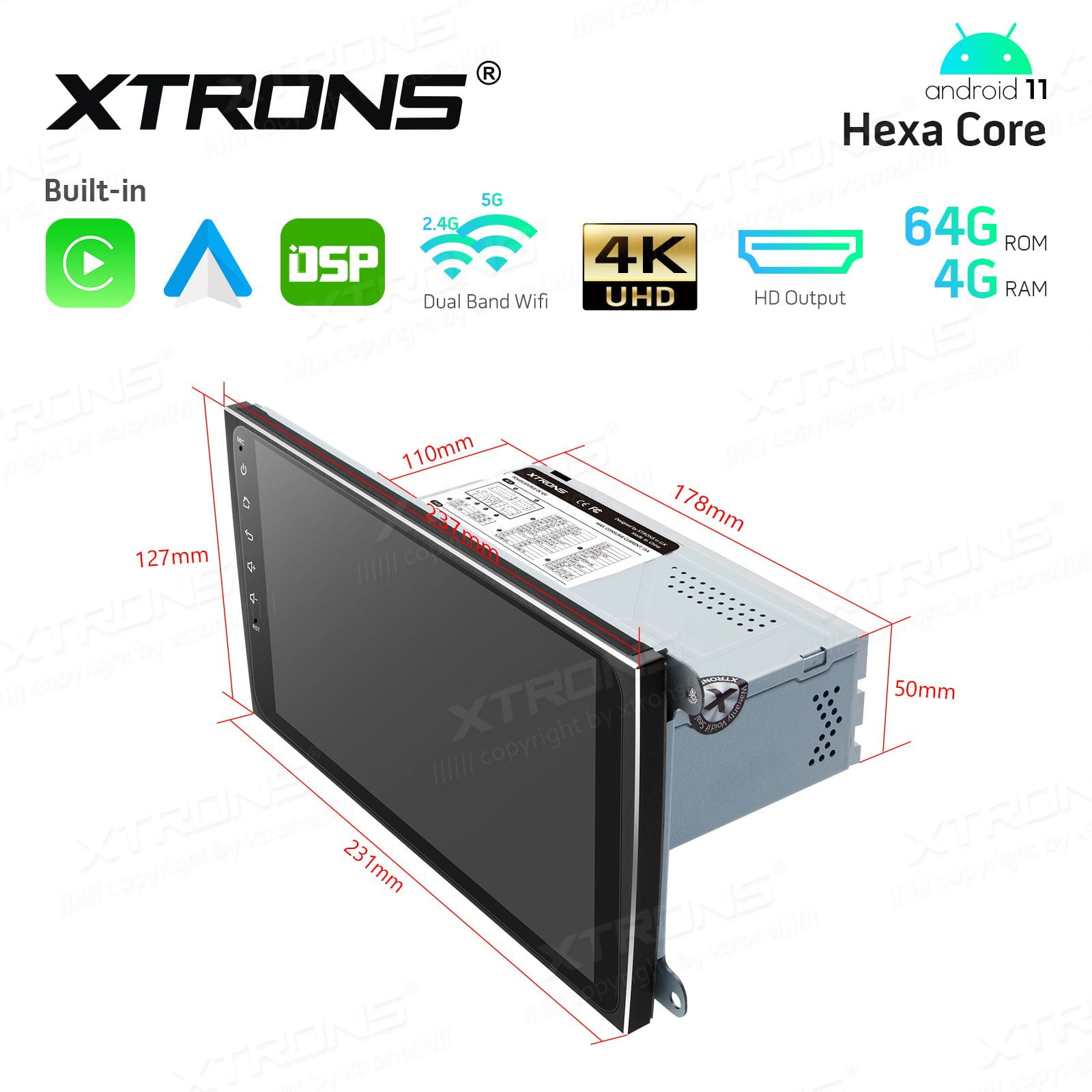 - Specjalnie zaprojektowany przez firmę Xtrons aluminiowa tylna ściana radia znacznie lepiej odprowadzająca ciepło .